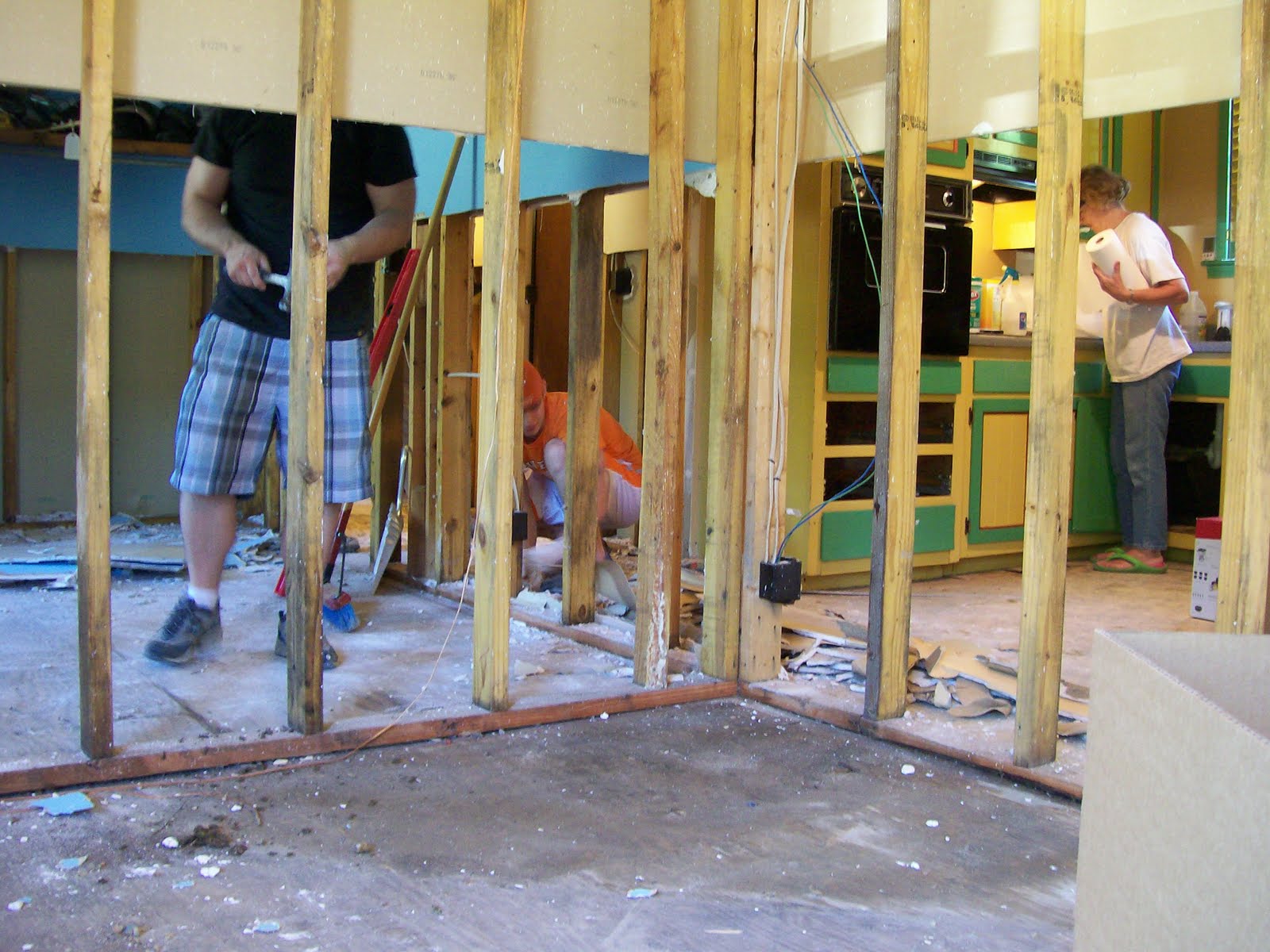 This morning I unplugged everything in the house and turned the power back on to everything accept the AC unit. I'll try it tomorrow. My folks trucked in this afternoon with some bleach and some big barn fans that I have set up pulling air through the house. They helped me unstick the Toyota. I got the carpet out of all but two rooms. I'll get those tomorrow then start pulling drywall. The Olds 88 was totally sunk. I suspect it's totaled. I'll drain and replace the fluids in it tomorrow and see if it will start.